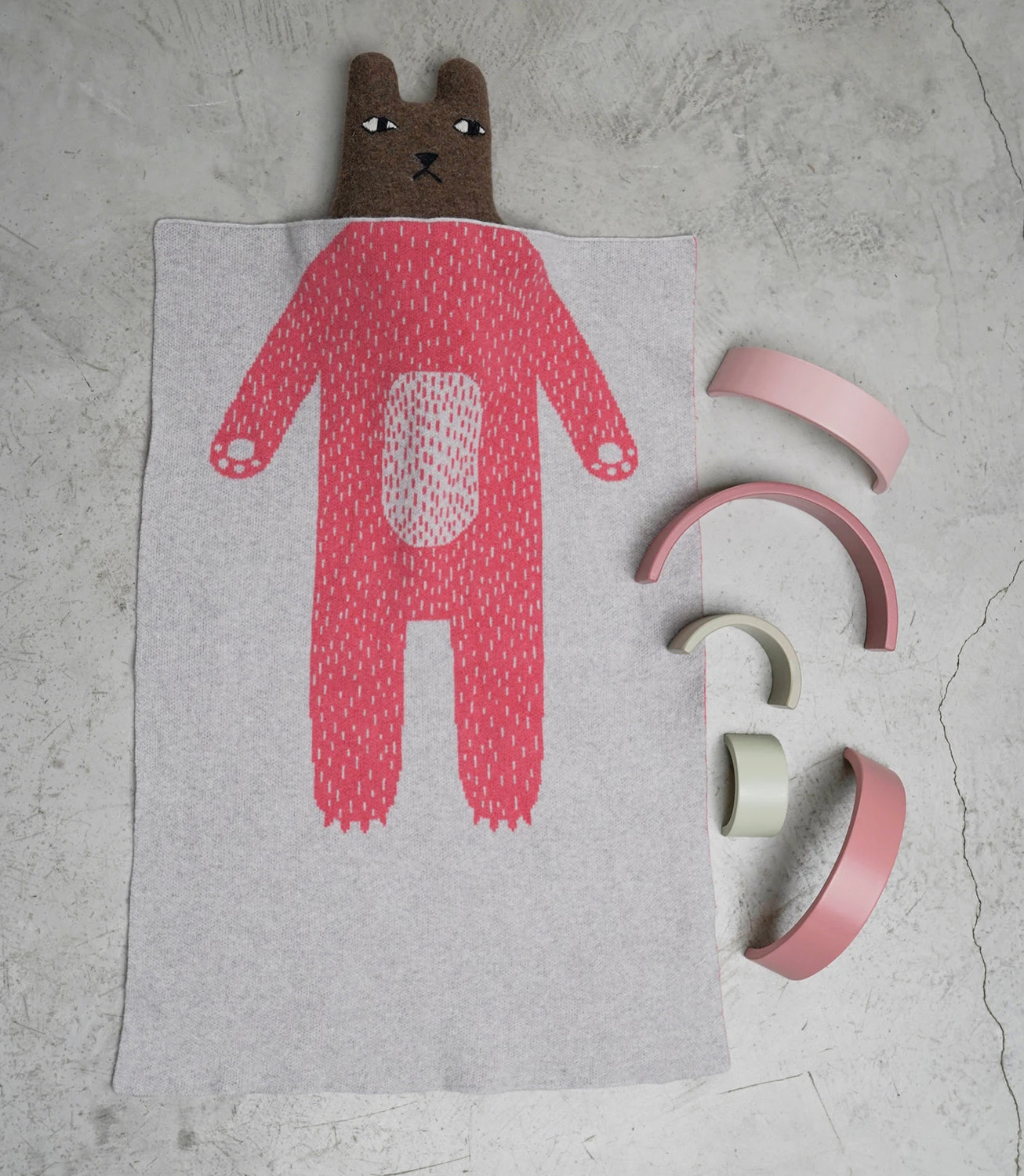 The Bear Mini Blanket can be used as a baby blanket, to keep your knees warm, or thrown over a favourite chair.