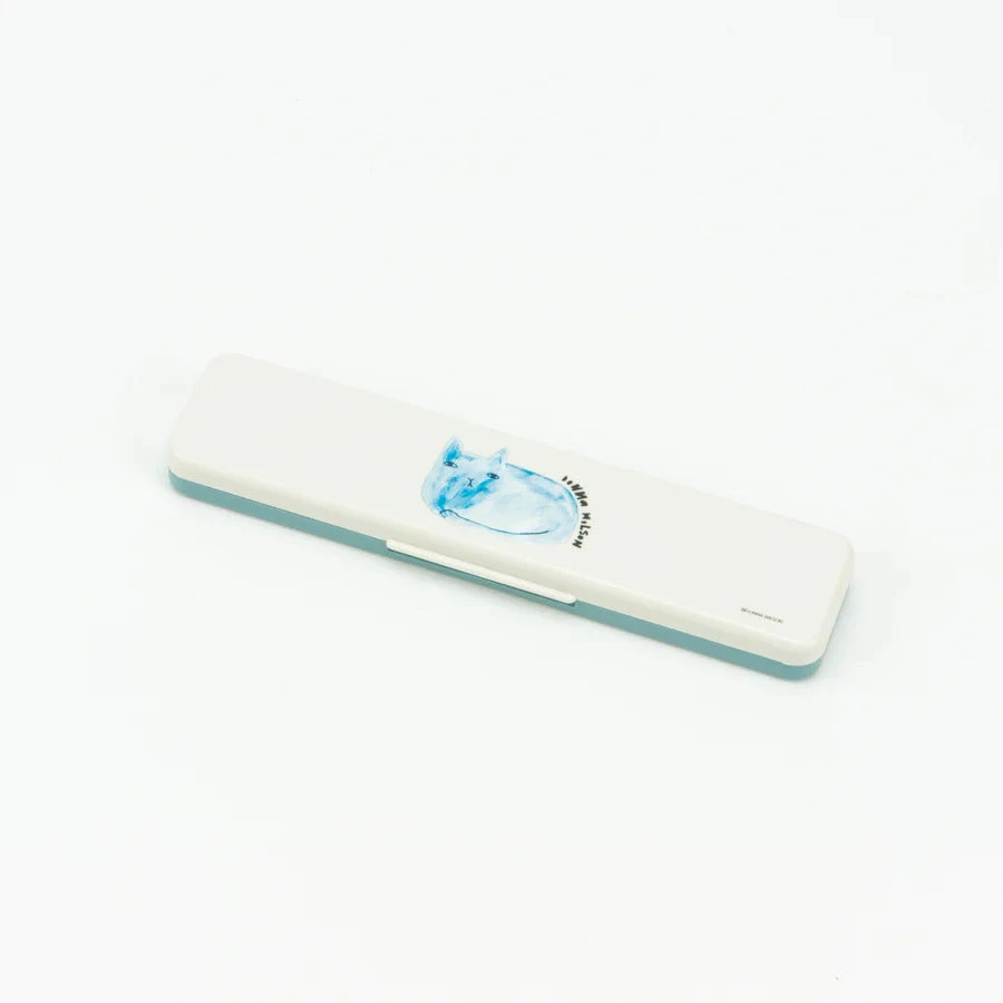 The case features a watercolour illustration of a contented blue cat, while the chopsticks are decorated with a Donna Wilson logo, and the carry case is lined with silicone so the cutlery won’t rattle around in your bag!