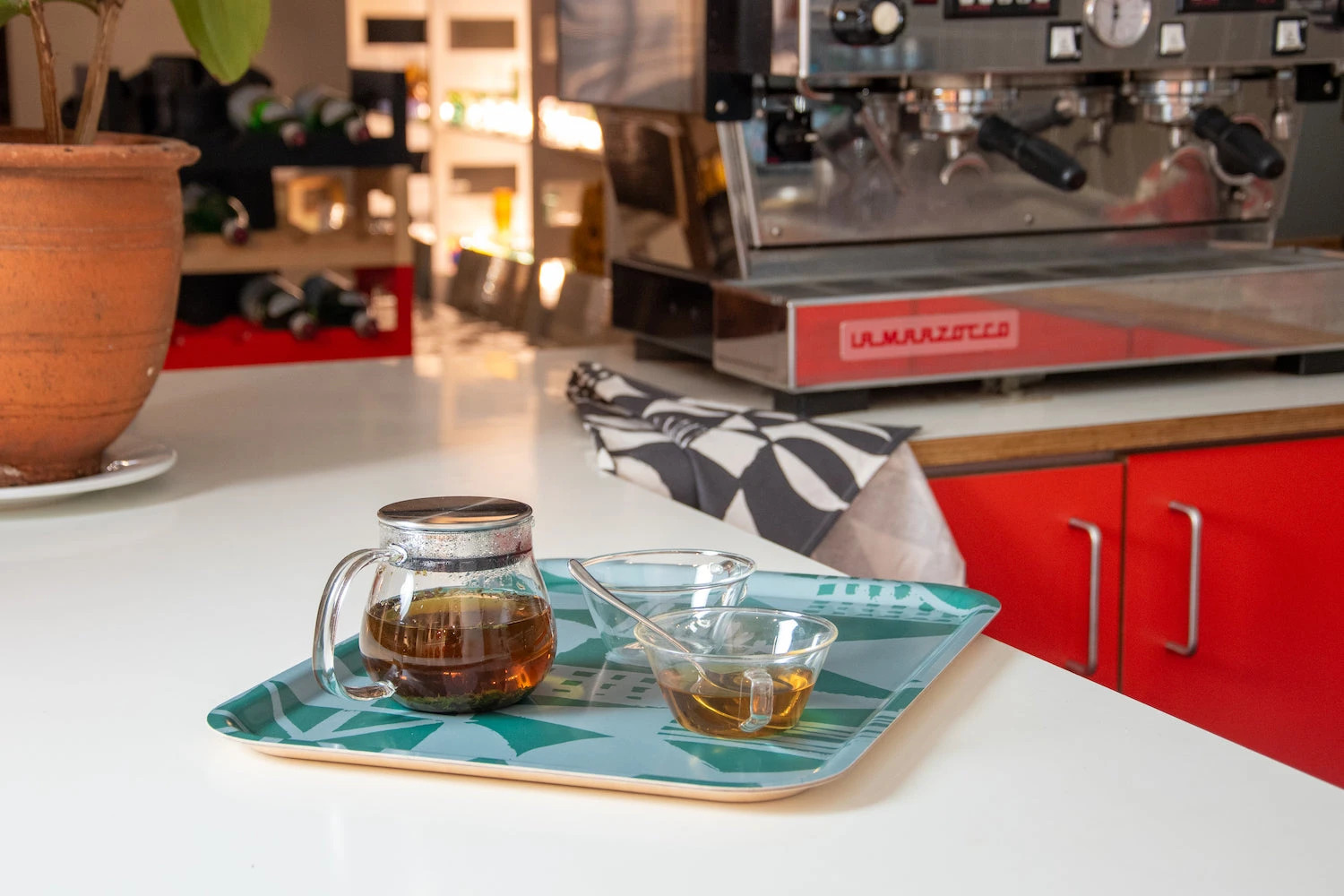 The perfect setting for bringing your tea break to a cosy spot, the design on this tray features wonky brushstrokes and vibrant colours, bringing a whimsical aesthetic to this practical piece.