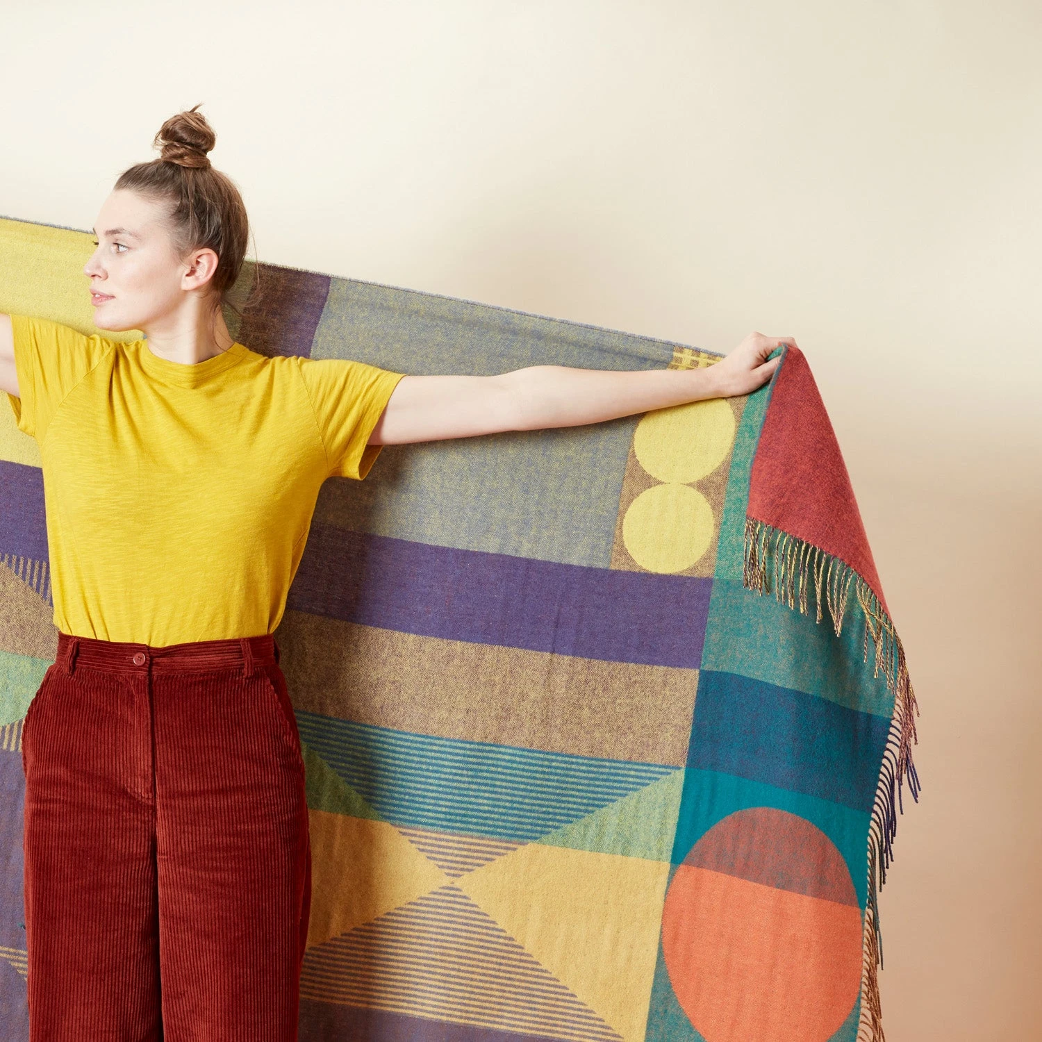 The colourful geometric shapes of our Carnival Lambswool Throw will bring all the fun of the fair to your home. A lighter-weight version of our brushed lambswool blankets, throw over a bed or sofa to brighten any room.
