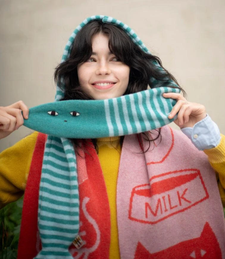 100% supersoft lambswool, knitted in our Knit Shop in Dundee, then hand embroidered in our London studio.