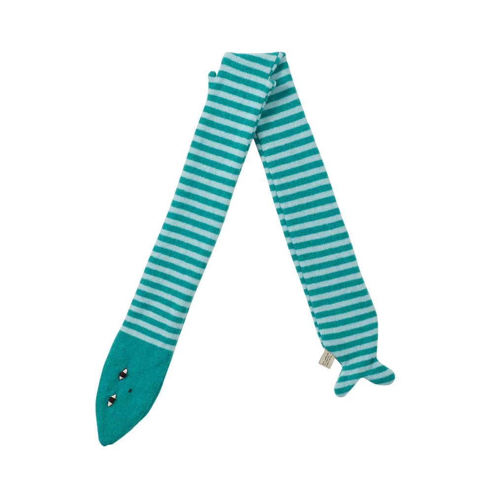 Have some fun and keep warm with blue and white striped Fish Shaped Scarf.