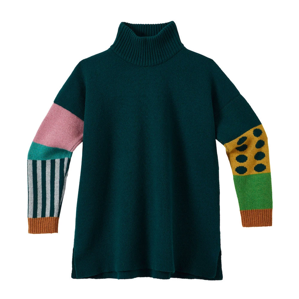 A playful and contemporary take on a classic cosy turtleneck sweater, this Hettie Sweater comes in a soothing forest green with playful details on the sleeves.