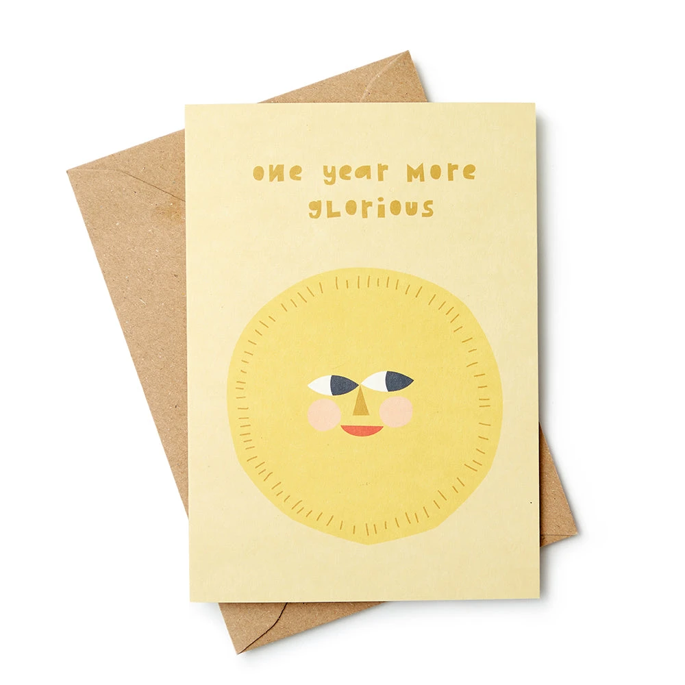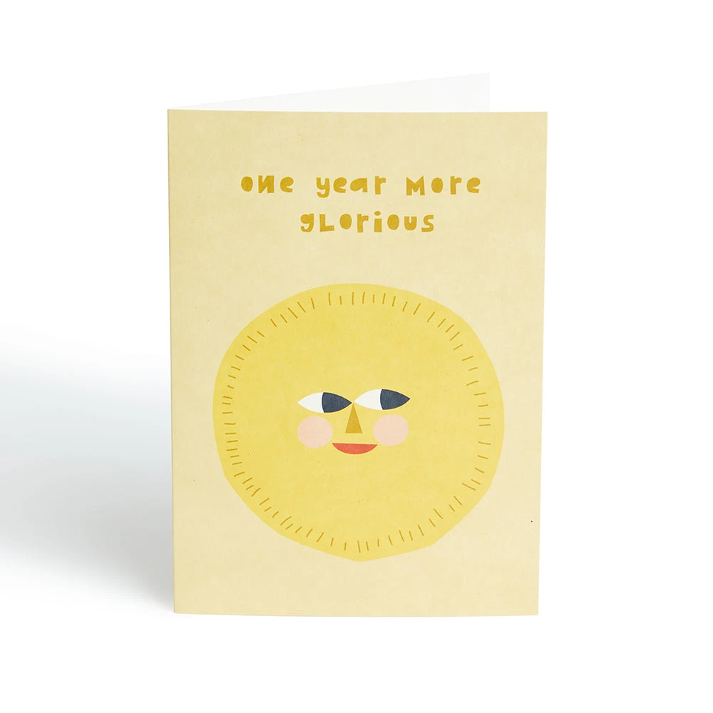 Celebrate someone ageing in style with this sunny birthday card. Left blank inside for your own message.