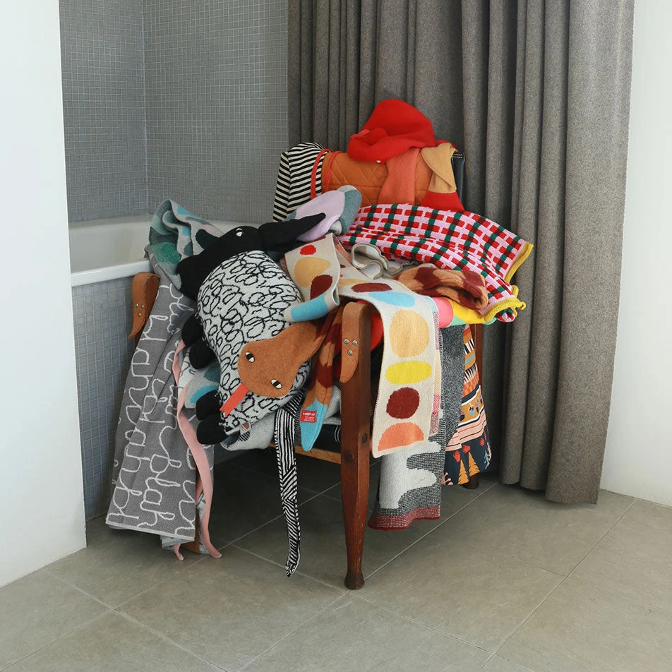 100% lambswool, knitted in our Knit Shop in Dundee, then hand embroidered in our London studio.