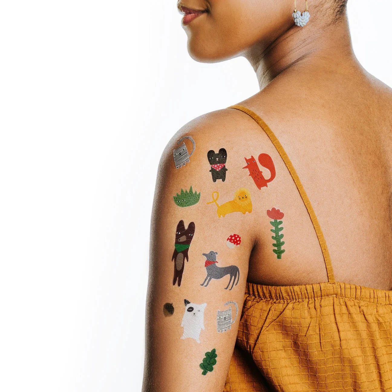 Have you ever seen a more motley crew of creatures? If we said no, we’d be lion! The Tattly Creature Crew Tattoo Sheet features illustrated flora and fauna based Donna’s illustrations.