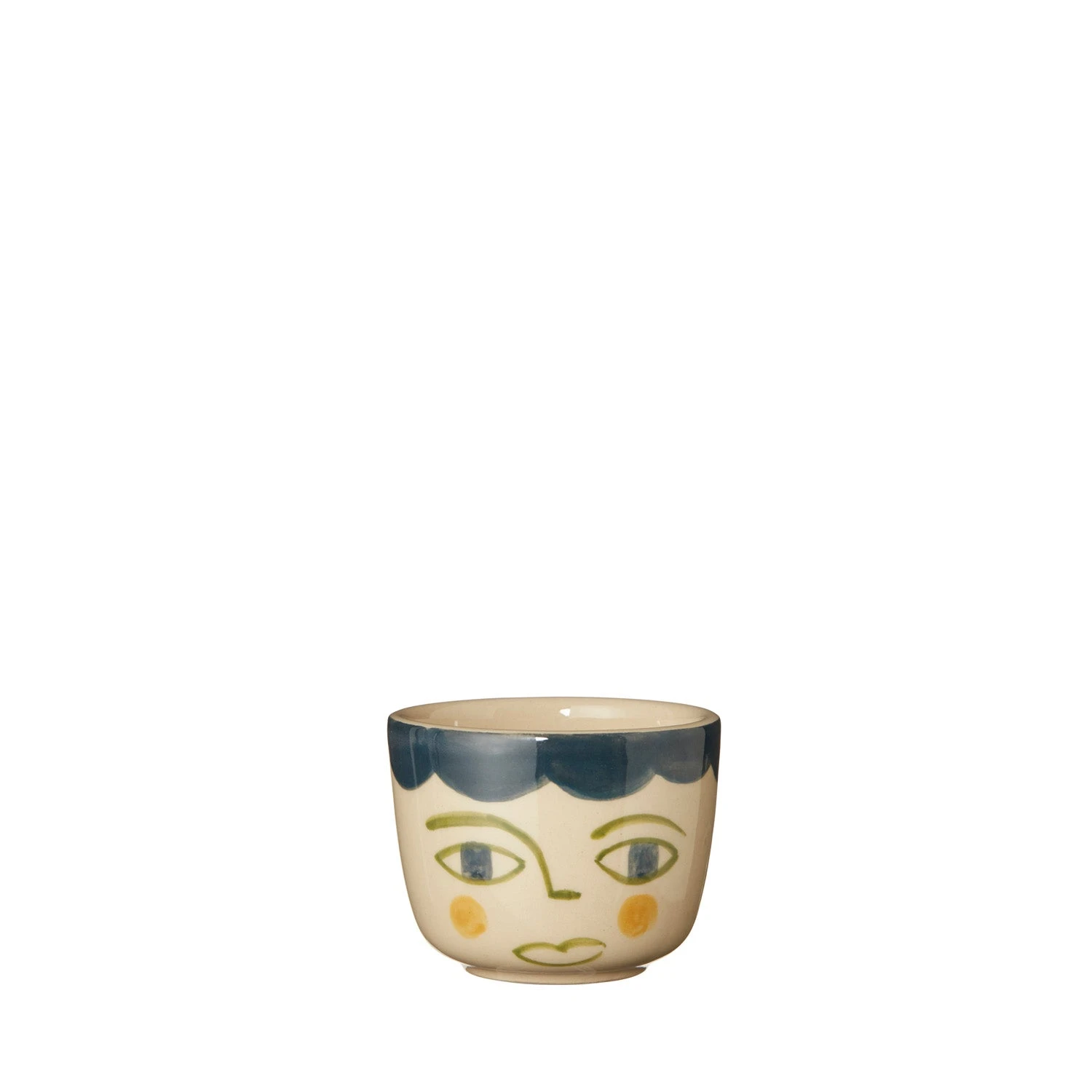Meet Violet, with her rosy cheeks and distinctive blue barnet. Every pot is painted by hand, meaning each one is unique.